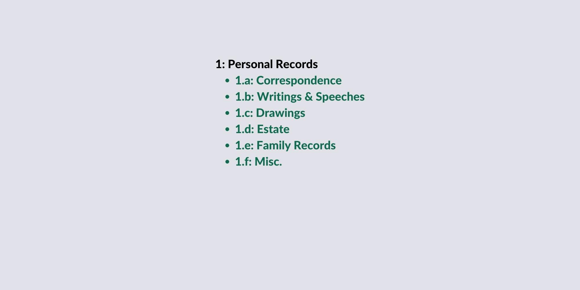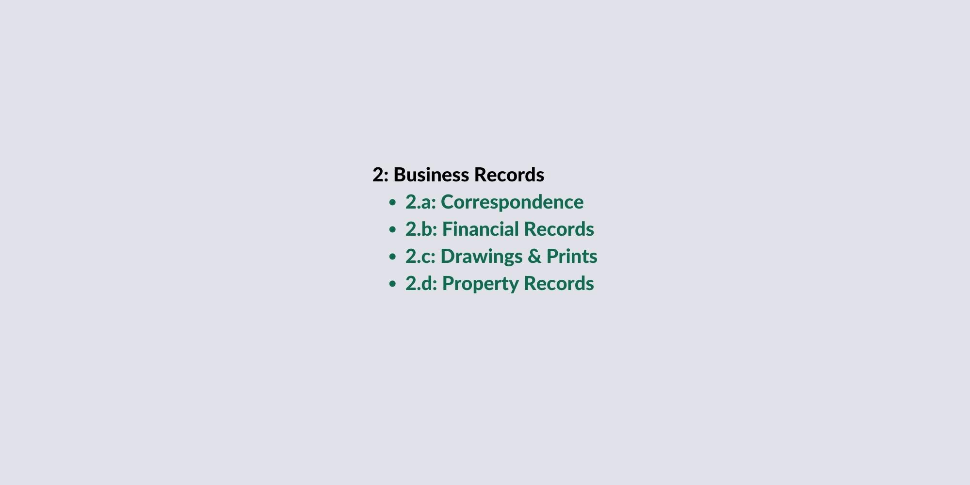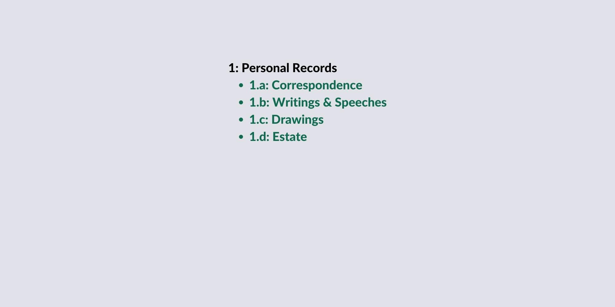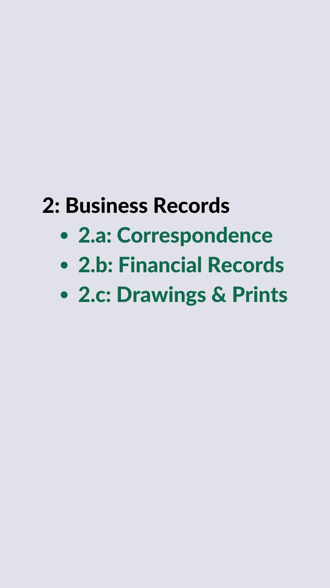 For example, the "Drawings" subseries in the "Personal Records" series will likely be of a more casual nature and may deal with personal matters or interest. Meanwhile, the "Drawings and Prints" subseries in the "Business Records" series will probably contain materials that are more formal in tone and front-facing.