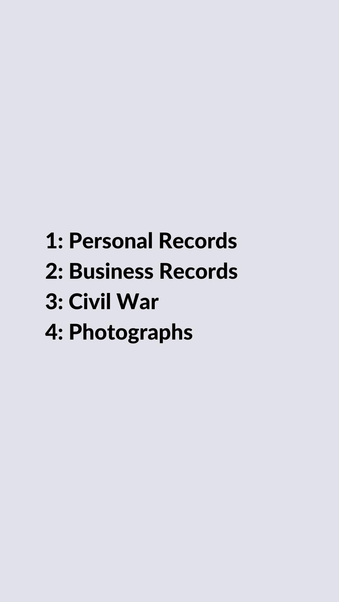 As it stands now, the collection has been arranged into four series or categories: "Personal Records," "Business Records," "Civil War," and "Photographs."